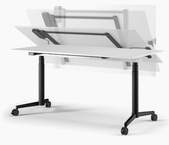 Die Pontis Hypa-Schreib- und Seminartische sind mit einer klappbaren Tischplatte ausgestattet, sodass sich die Tische nach der Verwendung gestaffelt und platzsparend lagern lassen. Das eröffnet neue Möglichkeiten der optimalen Raumnutzung. Die aufklappbare Tischplatte ist als beschreibbares oder zusätzlich magnethaftendes Whiteboard verfügbar und bietet somit mehr Agilität beim gemeinsamen Brainstorming in Workshops oder eine ideale Projektionsfläche für Präsentationen. Optionales Zubehör, wie beispielsweise eine magnetische Aufbewahrungsbox sowie verschiedene Marker und Magnete in Holzausführung runden das intelligente System ab.